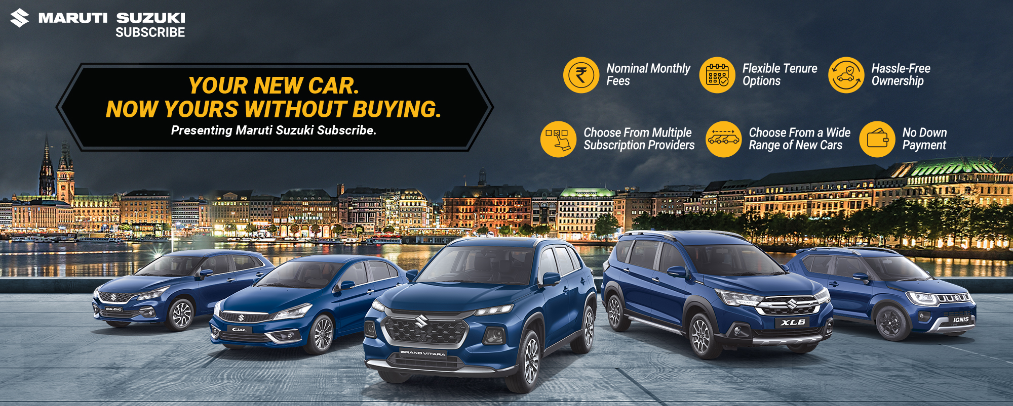 Maruti Suzuki Subscribe enables all customers to enjoy driving their preferred Maruti Suzuki cars without having to deal with all the financial responsibilities that come with owning a car.All you need to do is opt for a monthly subscription plan at a fixed monthly fee, which includes the routine maintenance and insurance costs, and choose a flexible tenure. At SM Cars in, , Salem, all Hatchback, Sedan, SUV, the MUV models line-up includes Baleno, Invicto, EVitara, Jimny, Ciaz, Ignis, Fronx, Grand Vitara, XL6. Here, you will enjoy Maruti Suzuki Subscribe benefits such as: